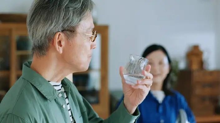 セッ、カチ、セッ、カチ、と時を刻んで生きてきた働き者のあなたにこそ天然水の休息を。