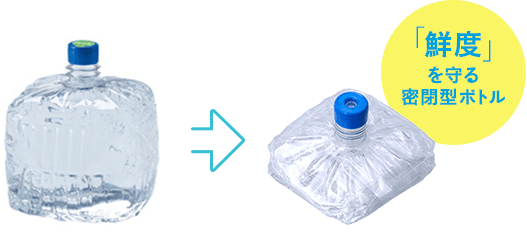 天然水の「鮮度」を守り続けるので、最後の一滴まで汲みたてのおいしさが続きます。