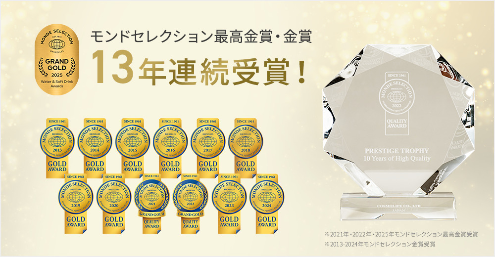 汲みたての天然水を48時間以内にスピード出荷しており、その美味しさは世界中で評価※を頂いております。